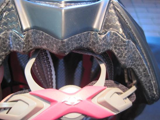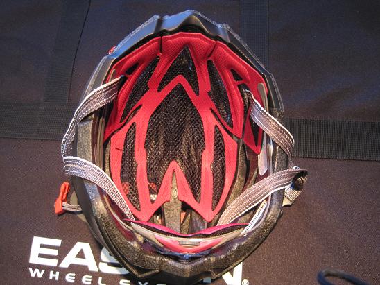 内装のインナーパット生地は赤で、COOLMAX 採用の2つのインナーを使い分ける事で常に快適さをキープされている。