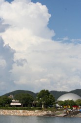 見ながら進んでいく。あの湖のなかに420人は多い。スタートやブイ周辺・橋の下あたりは大渋滞で、