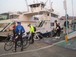 向島 船のりばからフェリーに乗り込むClimbライダー