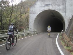 救援隊長とのんびりライダーと私と共に・・・坂を上るとトンネル(藤ノ木トンネル)があって少し山の上にあるダム湖に駆け上がりました。