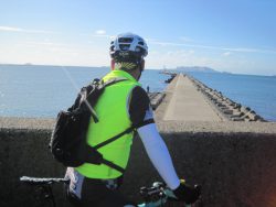 浜国を西に走っていると ママチャリで日本一周している 輪行ライダーと出会い、「感激」しました。