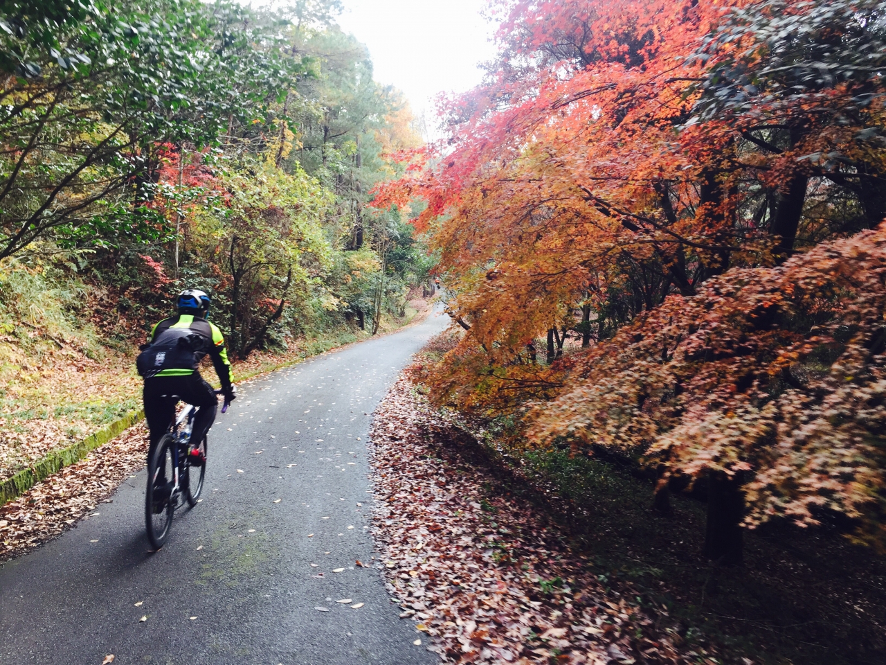 落ち葉が 一杯落ちていました~~空からも降ってきますー1㎞ぐらいのヒルクライムです。