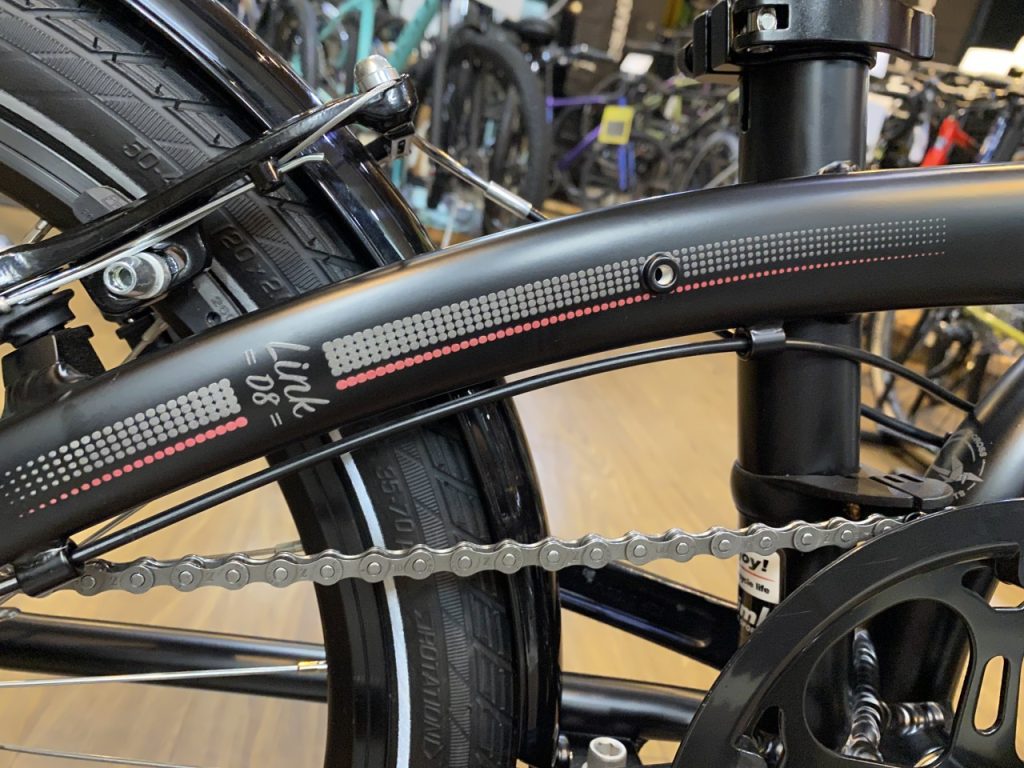 街乗りに適したクッション性抜群のサドル。シュワルベ 極太タイヤのBig Apple 20×2.00装着で乗りやすいTern Link D8。