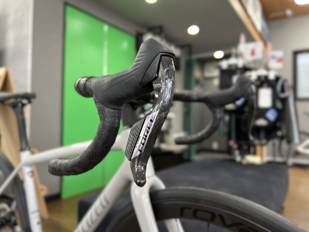 スペシャライズド社とパートナーシップを組むSramのコンポーネントが搭載された完成車となります。セカンドグレードのFORCEを搭載し軽量でカッコよく仕上がっています(^▽^)/