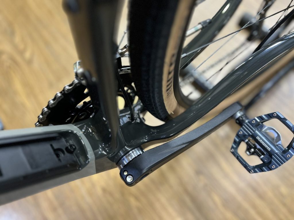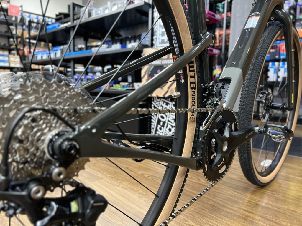 カーボンフレームとキングピンのリアショック機能が組み合わさって、乗り心地抜群のグラベルロードとなります。