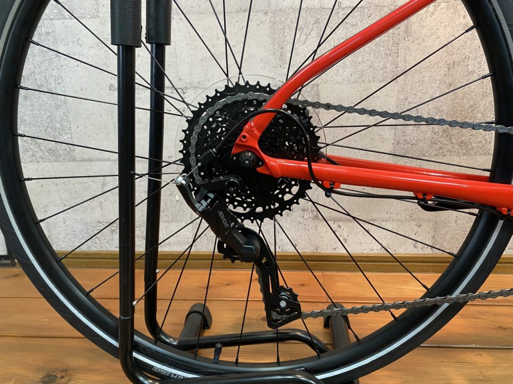 リアの9速しかないので、選べるギアに制約がでます。乗られる方の脚力によっては一番軽いギアにしても上り坂がしんどくかったり、下り坂で一番重たいギアにしても軽すぎてスピードが乗らないかもしれません。