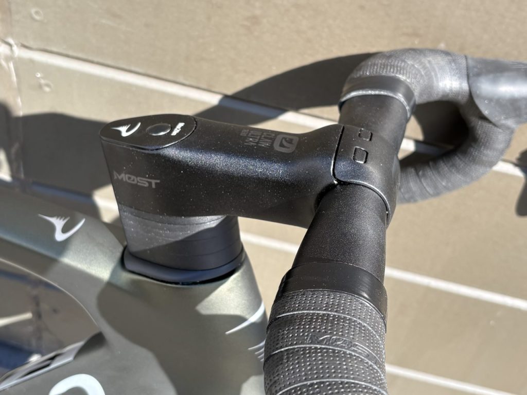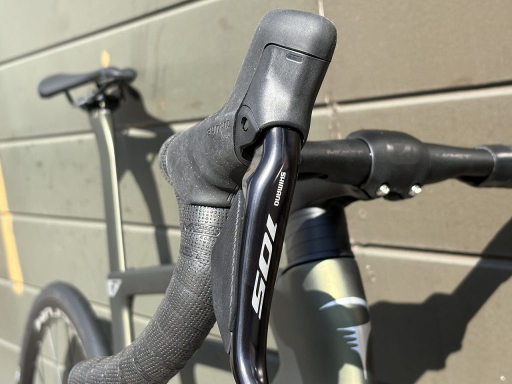 メインコンポはシマノ105Di2となっており、堅実さと便利さを両立。
