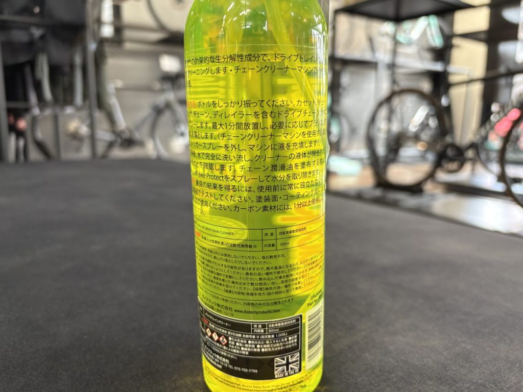 自転車チェーンやドライブまわりの濃い汚れの分解に非常に有効な「ドライブトレインクリーナー」が入荷しました。