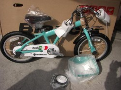 Bianchi BAMBINO 最年少キッズのために、完成されたバイク~幼児用って事で、コマ&カゴ付きです。カラーは、もちろんBianchi カラーのチェレステ。