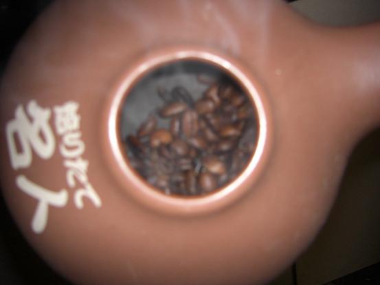 白青いコーヒー生豆を10分ぐらいかジックリ炒って行く~少し煙がモクモクと・・・一面コーヒーショップの香り~Climbが、もう~スターバックス状態に包まれる~