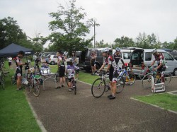 AM7:00には、参加者が集まってくれました。受付を済ませ、自転車を組み立て、試走の準備をしました。