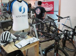 Storck ストークのカーボンバイクが渋く展示されていた!!高級感を感じるロードフレームに、とっても軽量で剛性の高そうなマウンテンバイクフレーム。没頭したカーボン製品開発においては、ファイバー1本1本の太さから“縒り”のパターンまでミクロン単位でこだわることで他社製品に差をつけ、ユーザー固有のニーズに対応するって事です。Markus Storckは言います。“Innovation・Design・Quality”