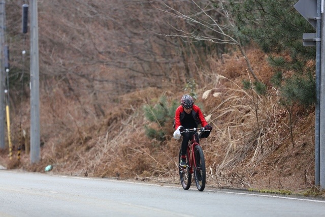 さっきはMTBに乗ってたライダー、今度はヒルクライムにもう一度挑戦!!。。。でもやっぱりキツいものはキツいようです 笑