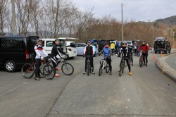 クライムから自走で行く自走組は8:30過ぎから集まり、走行するルートの確認・自己紹介等ミーティングを終えたあと、自走組リーダー・yagiさんを先頭に9:00過ぎに出発!今回の山遊びに女子3名も参加しており、なんと自走組と一緒に出発していきました。