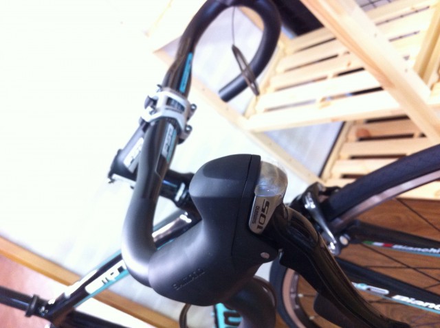 今回はブラック(カーボン)チェレステ 105完成車、サイズ50の入荷です。