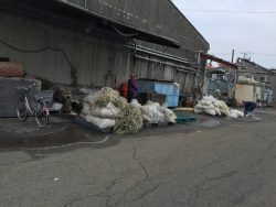 松江漁港の港町に入る~漁港らしく・・・網が干してあったりと魚の匂いがプンプン