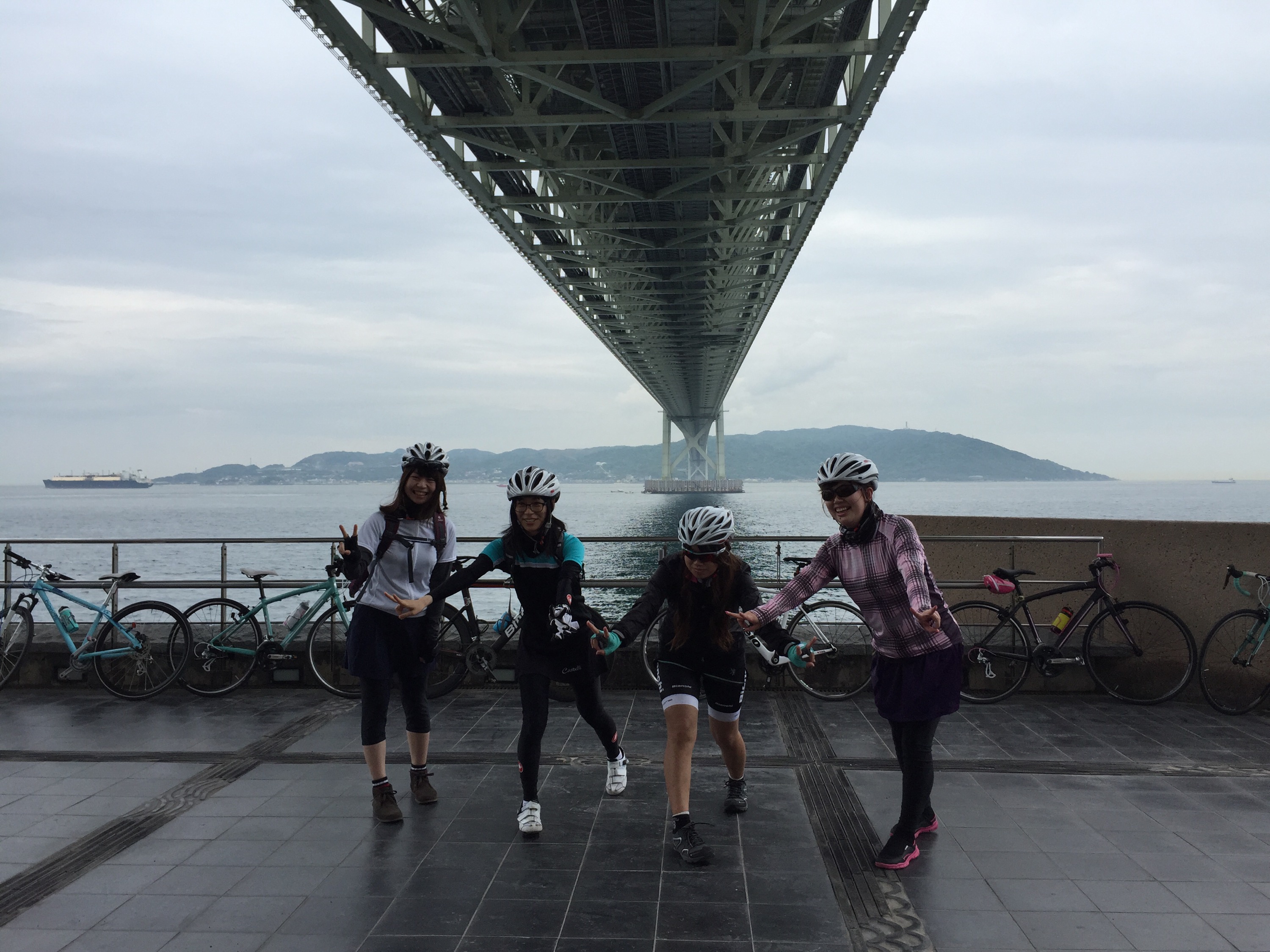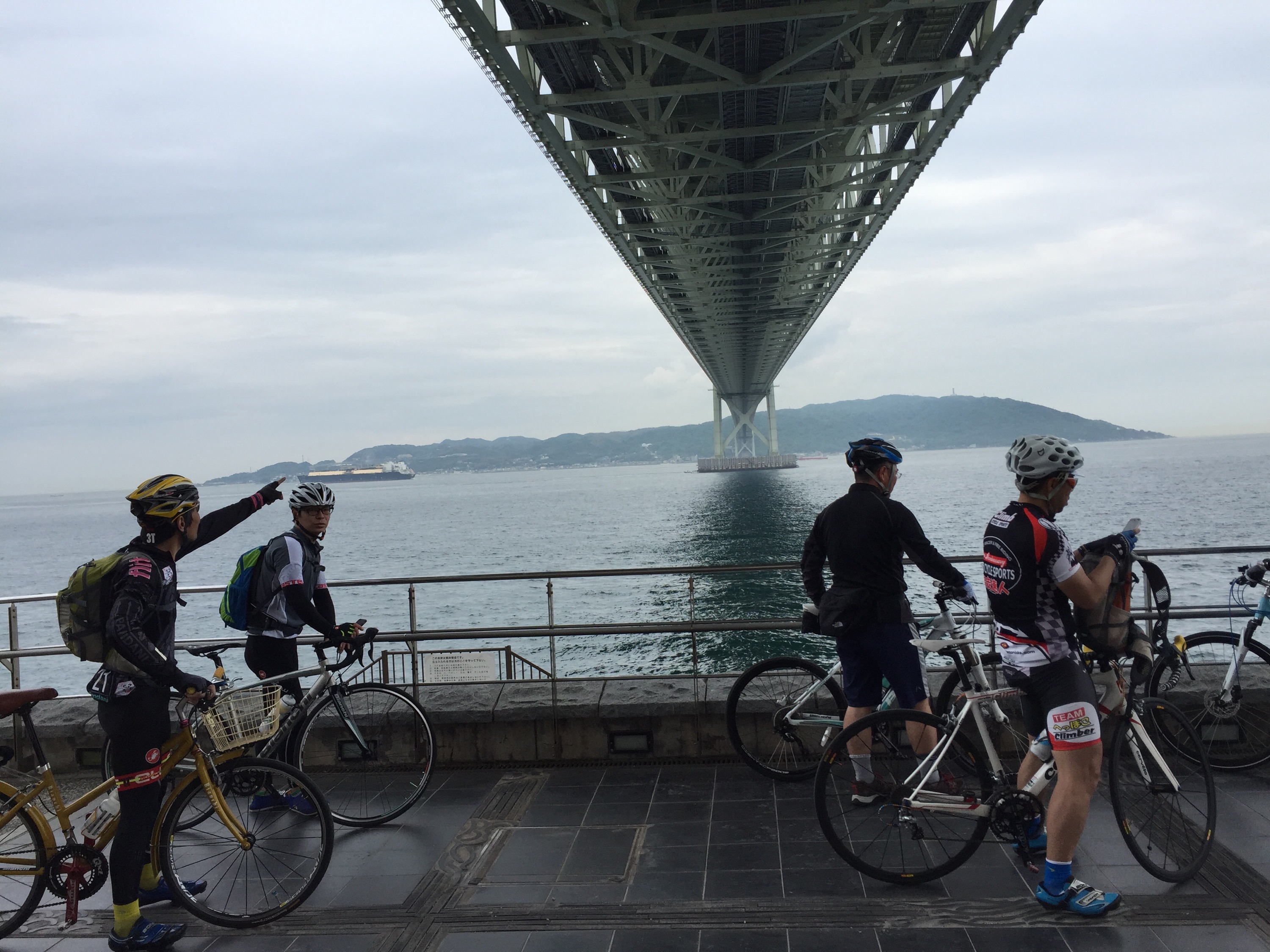 初心者向きの40kmサイクリングと健脚組のClimbライダー達、クライムから自走での100kmを目指して明石海峡大橋を眺めながらロングツーリングを楽しんで頂きました。