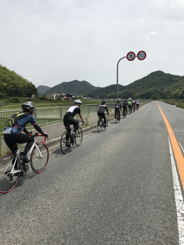 市街地を抜け372号線沿いの天川自転車通りゆっくり走る部隊と、