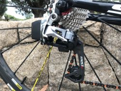 シフトレバーからフロントディレイラー、リアディレイラーと無線で連携していてケーブルは一切ありません。