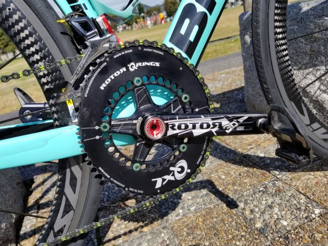 ドライブトレインクランクはROTOR 3D+ CRANKS チェーンリングはQ-XLです!!PCD130mmのオ・ト・コ仕様です