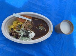 閉会式後はご当地の食べ物など町民の方々に料理を振舞って頂きました。