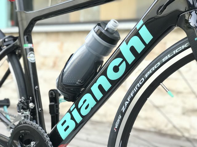 ビアンキのクロスバイクを乗られていたSさま。ビアンキのロードバイクが気になりご来店頂きました~現在チェレステカラーのビアンキでしたが違う色がご希望でしたのでブラックを選択していただきました。