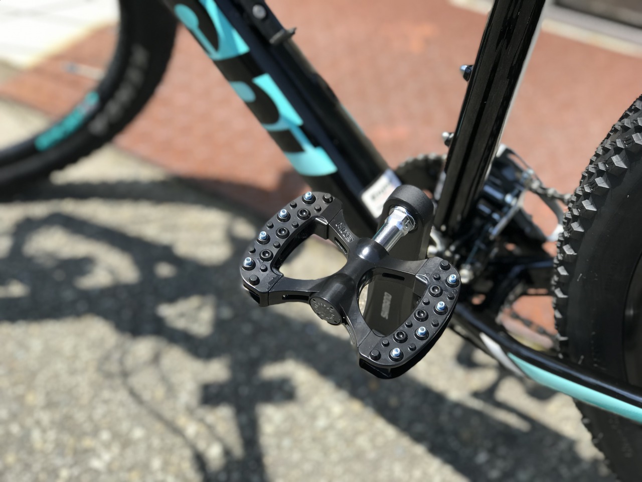 ペダルはMKSのガンマで踏み面もひろく、ペダリングのk上率も上がりそうですね!!