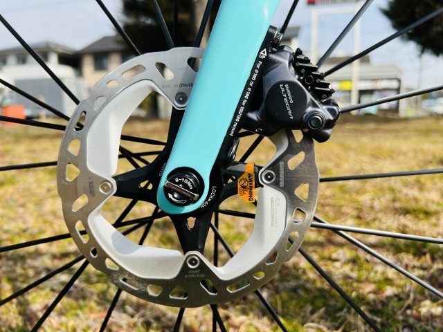 軽量フレームには軽量ホイールという事で32mmリム高のセミエアロとなります。乗り心地とヒルクライム性能も重視されての選択となります。