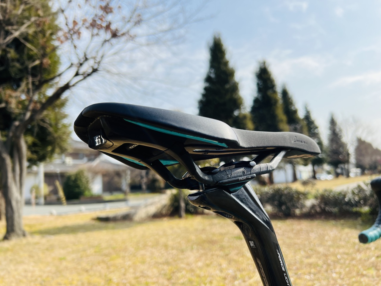 サドルはFIZIKのLUCE R1カーボンレールです。女性のオーナー様ですので女性向け専用設計のサドルとなりました。