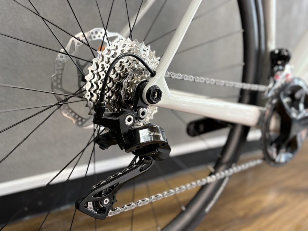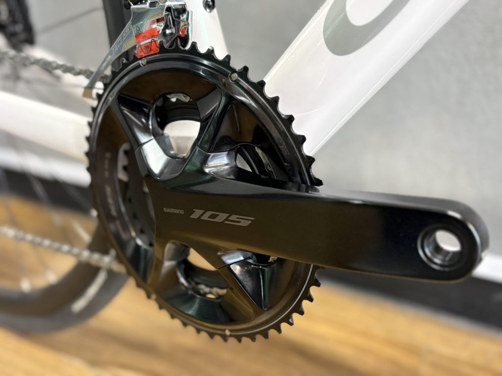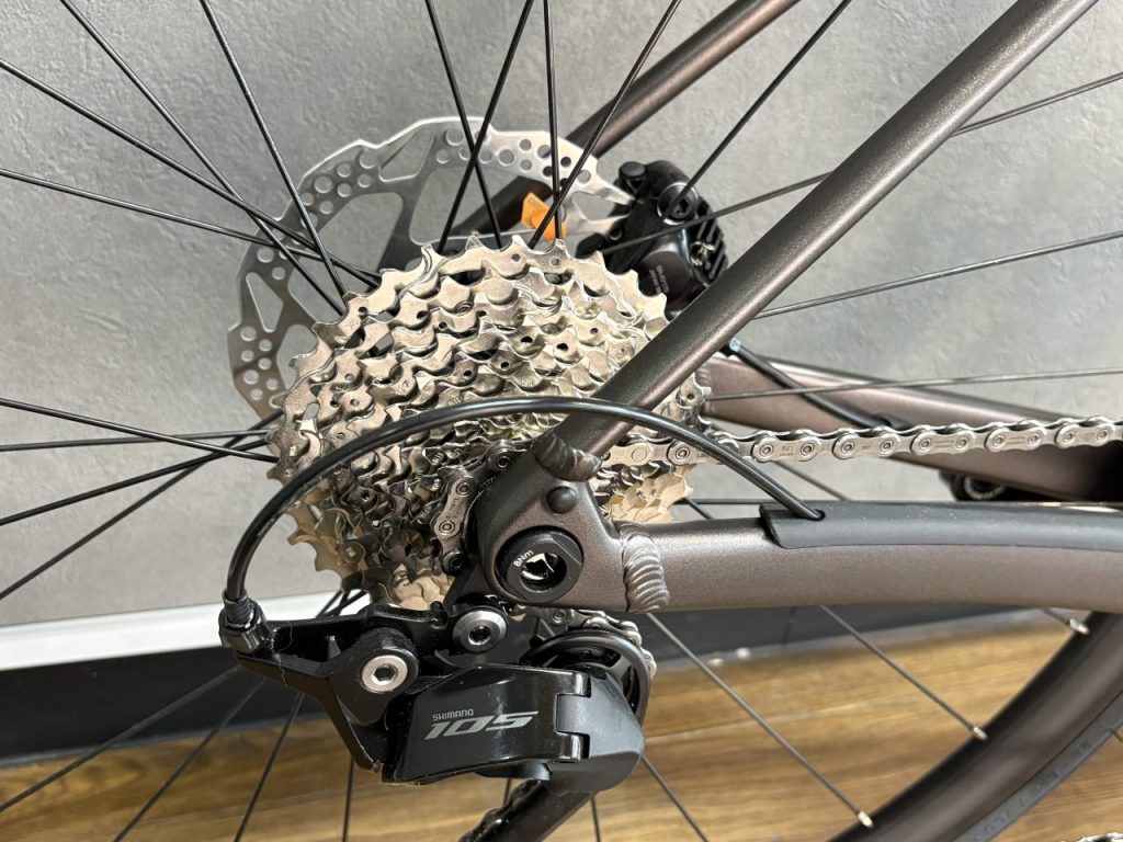 軽量カーボンフレームの俊敏性を持ったフレームにシマノ105 12Sを装備したスタンダードなモデル。