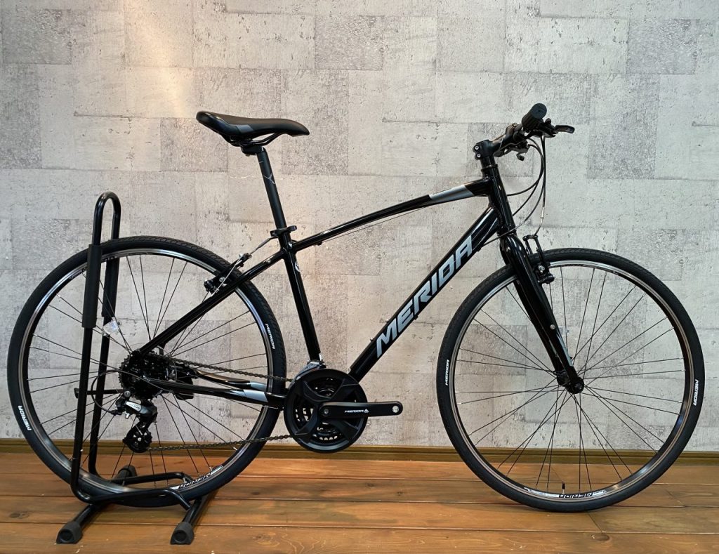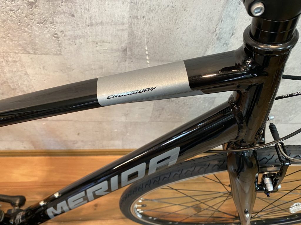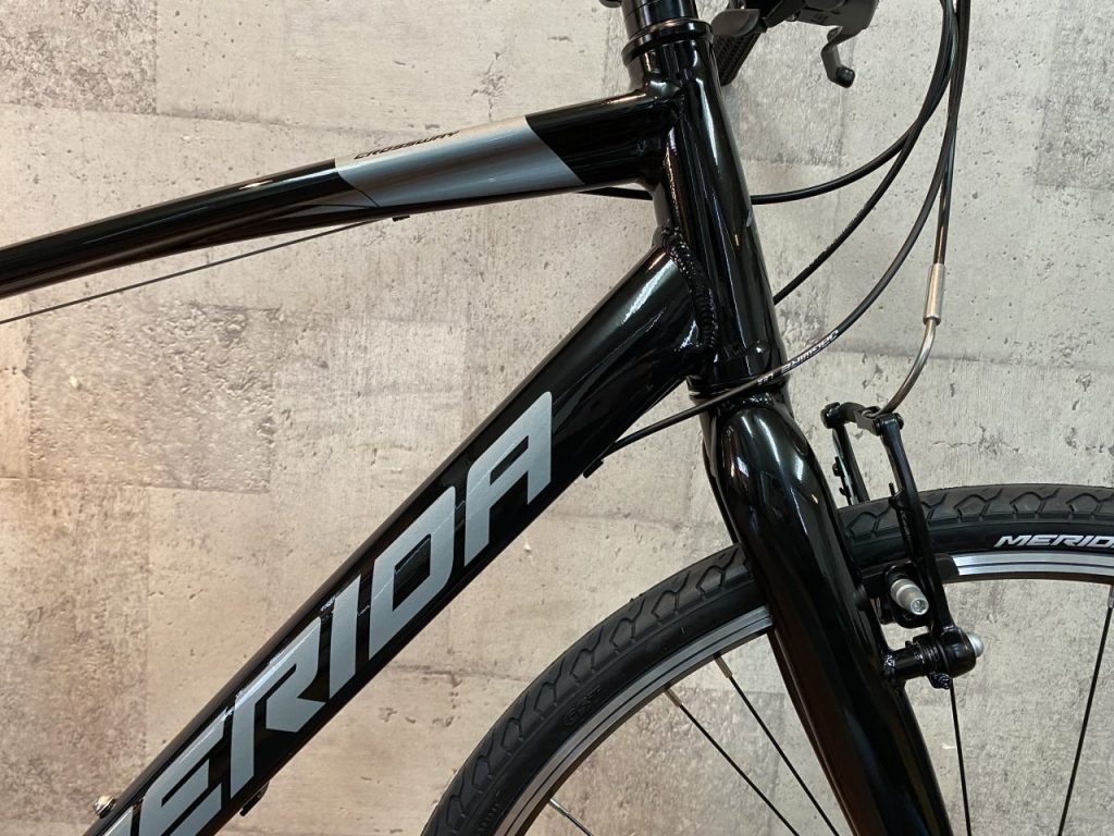 さてこちらのCROSSWAY、MERIDAが長年にわたるスポーツバイクの開発で培ってきた独自の製法によって設計されているモデルなっております。独自の製法で軽量なアルミフレームをベースに走行安定性が優れており、初めての方にも乗っていただきやすいです。