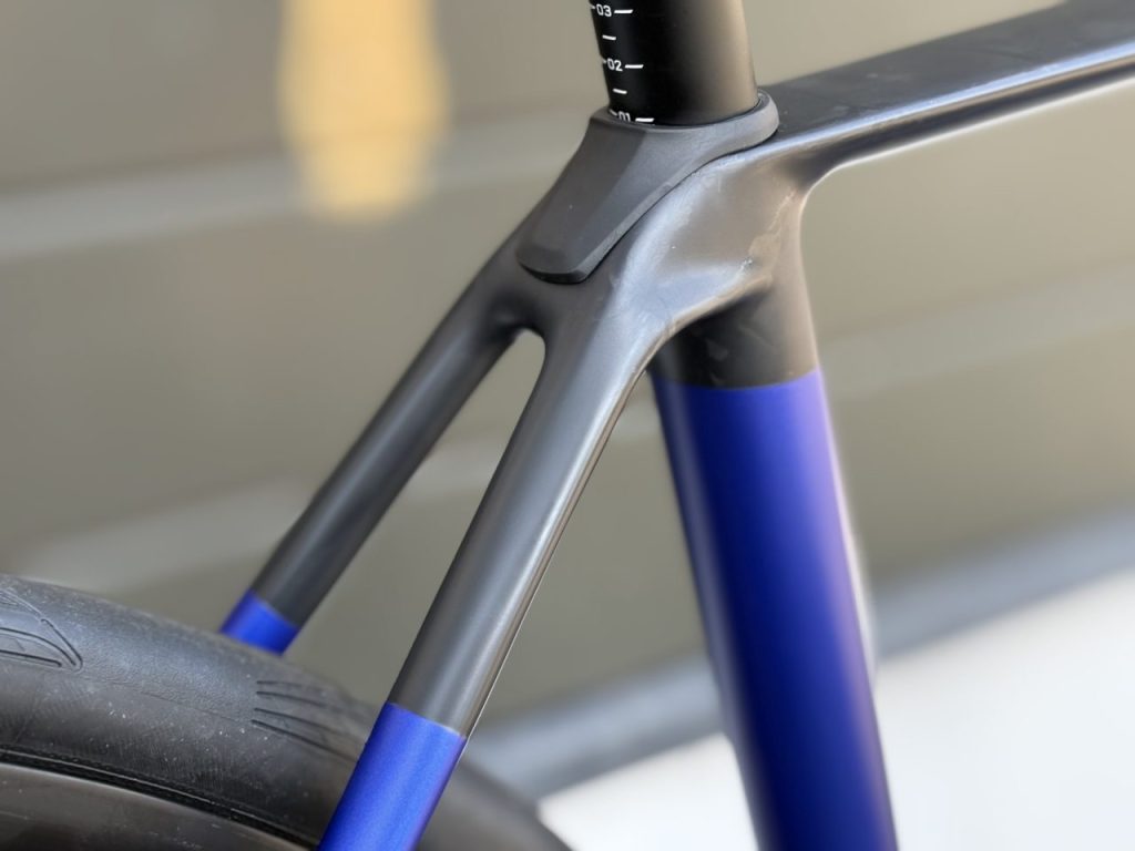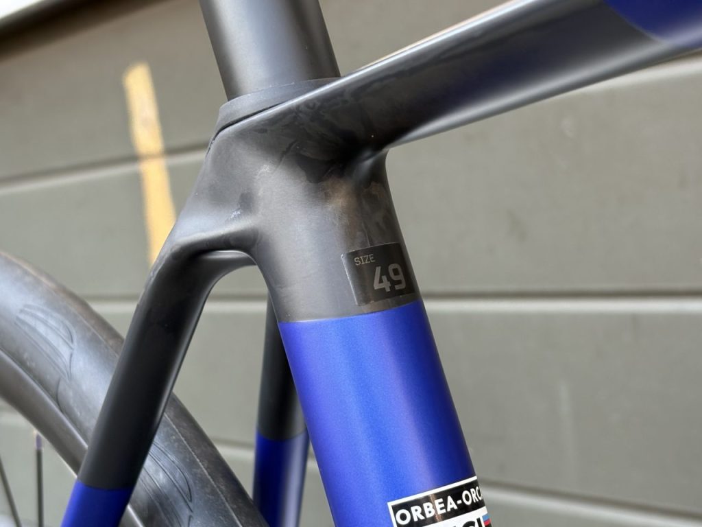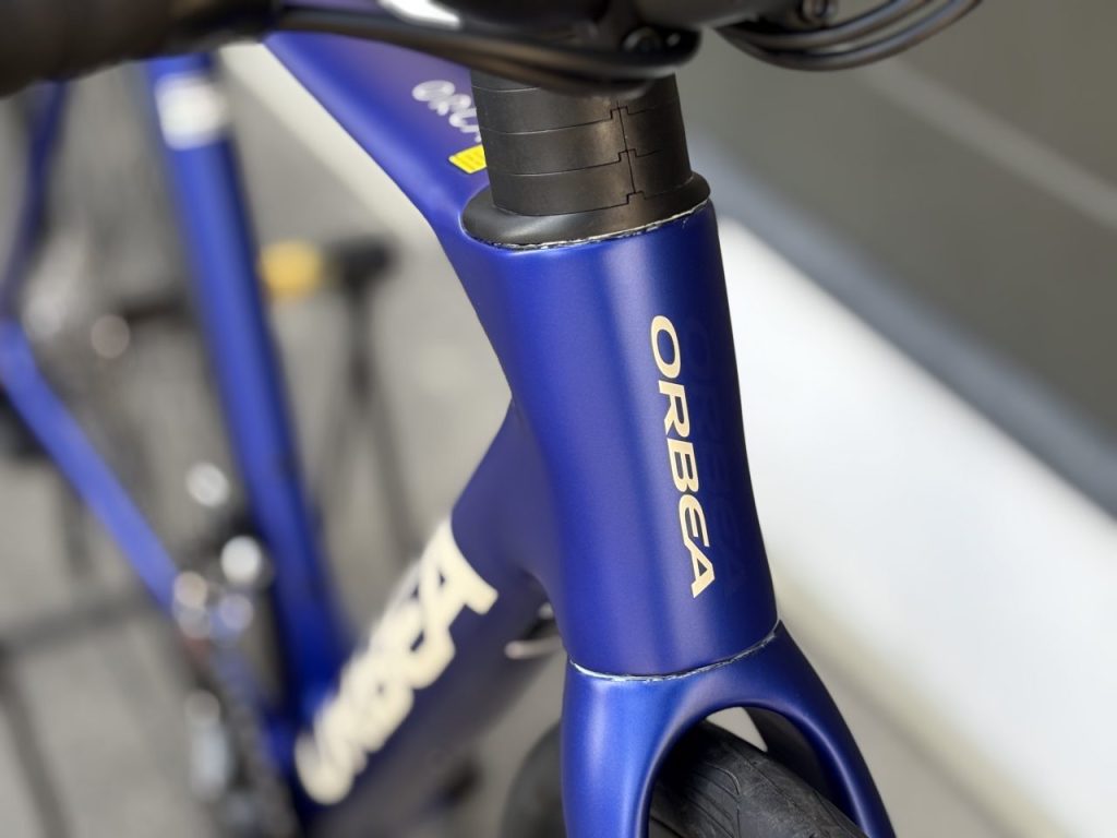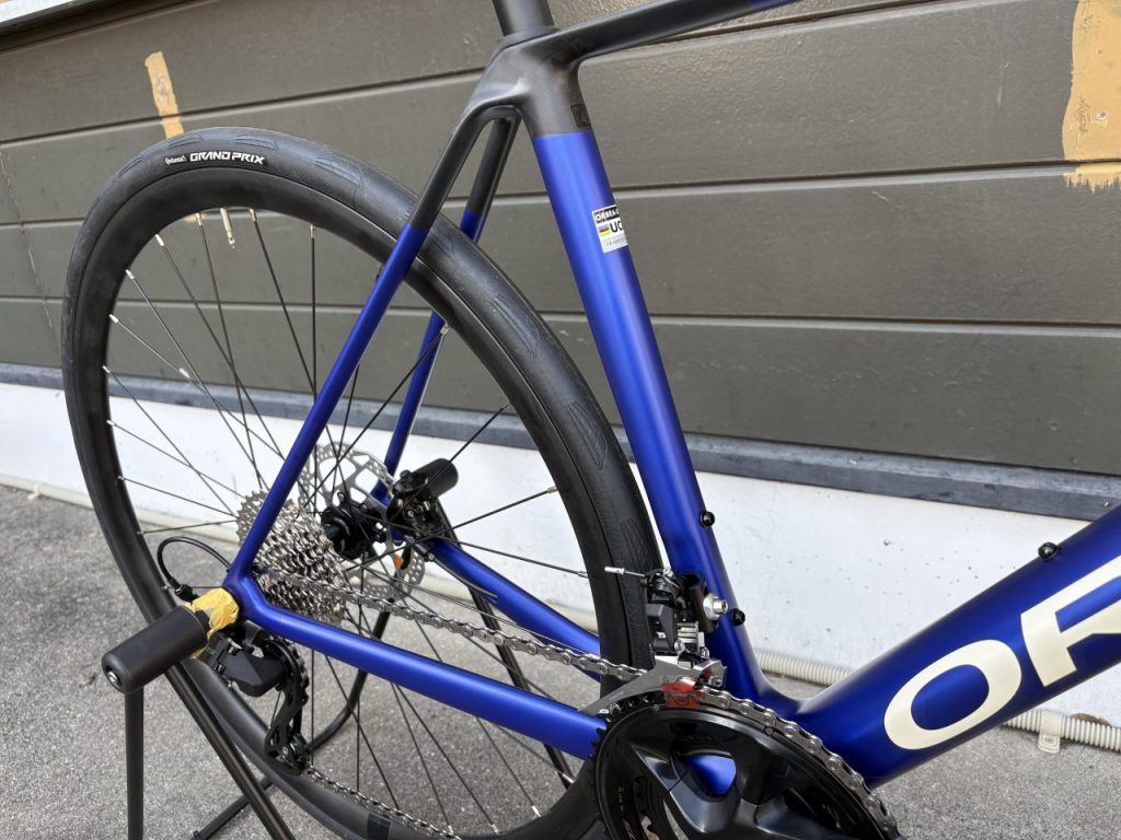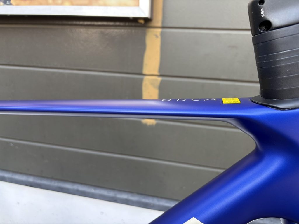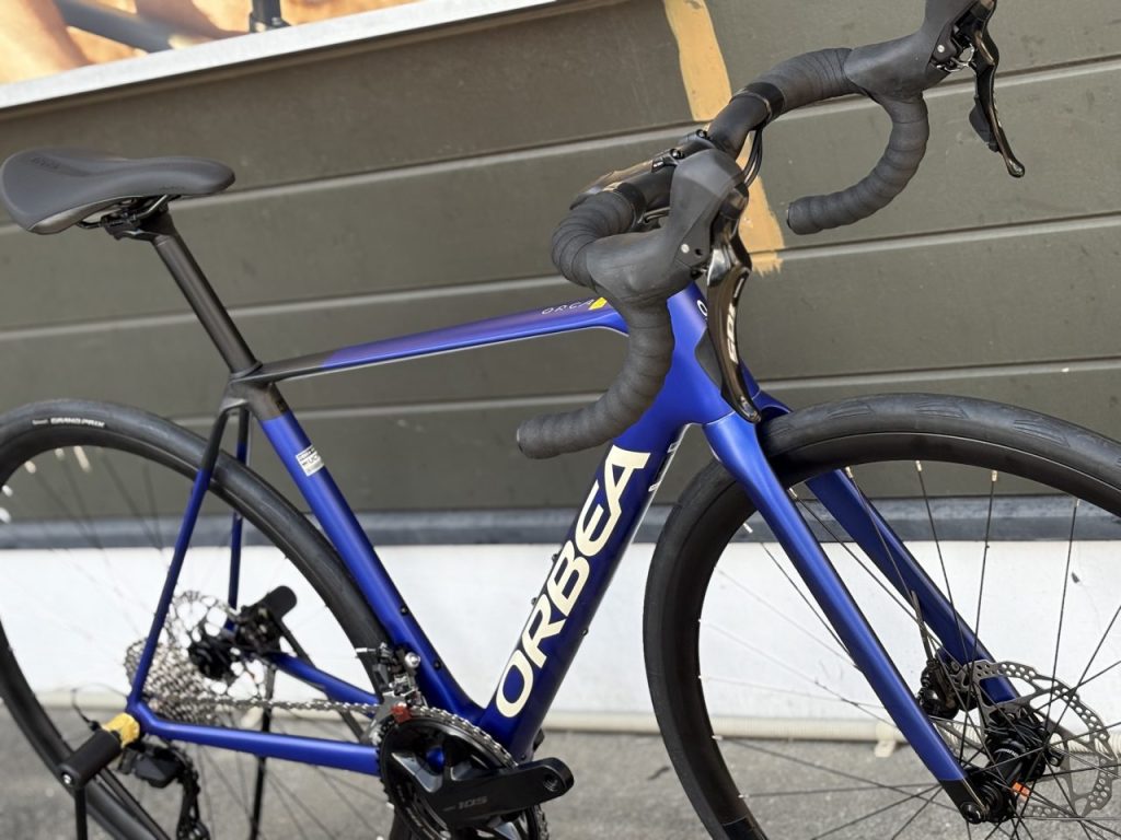 軽量な「オルカOMR」フレームにシマノ105・R7100コンポーネントが組まれています。フレーム軽いです。